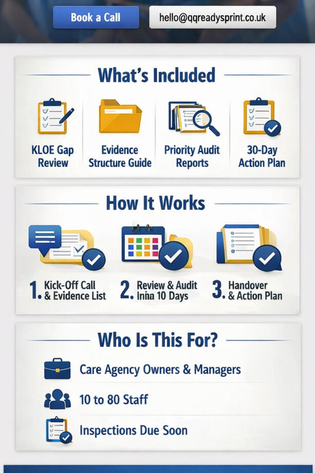 Gap review, evidence pack, priority audits, and a 30-day action plan.